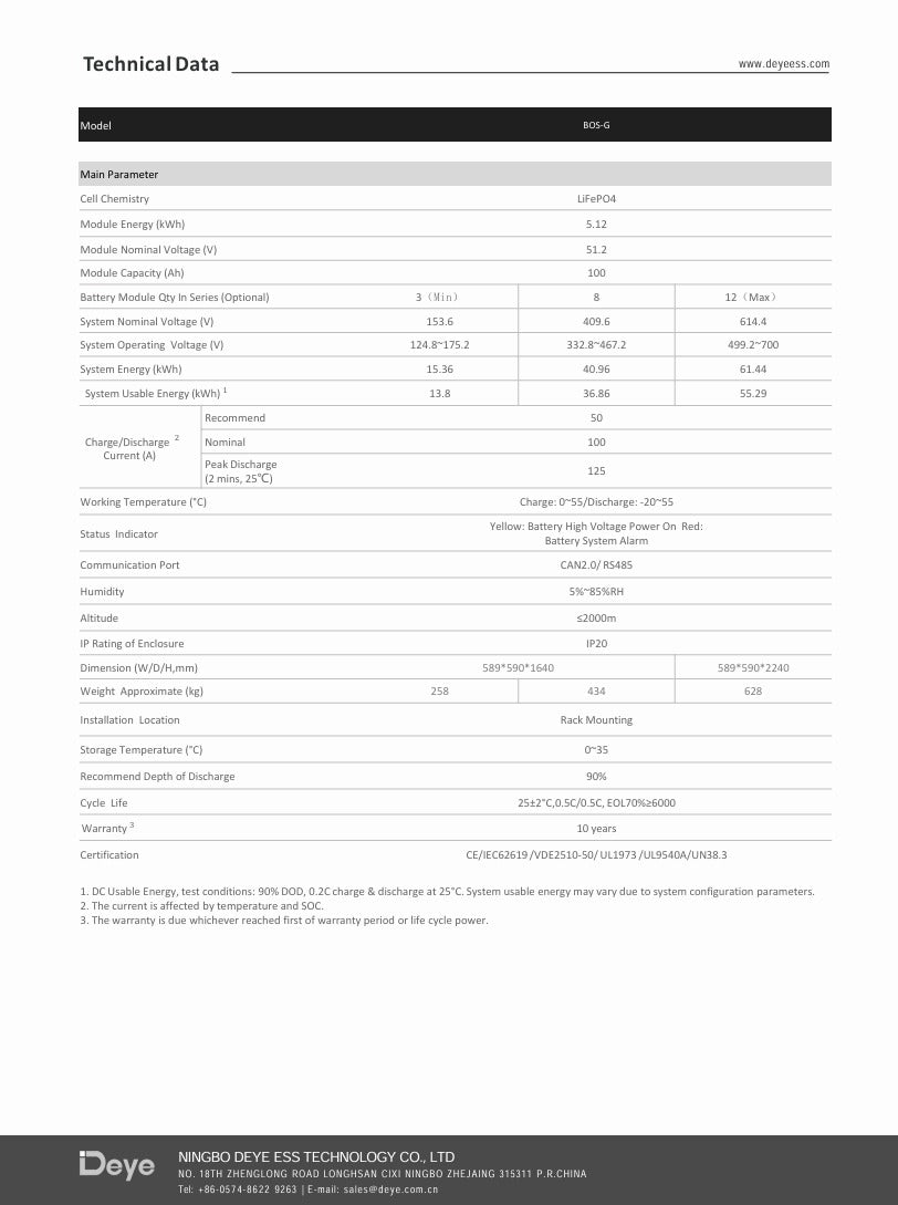 Deye BOS-G 3U-HRack