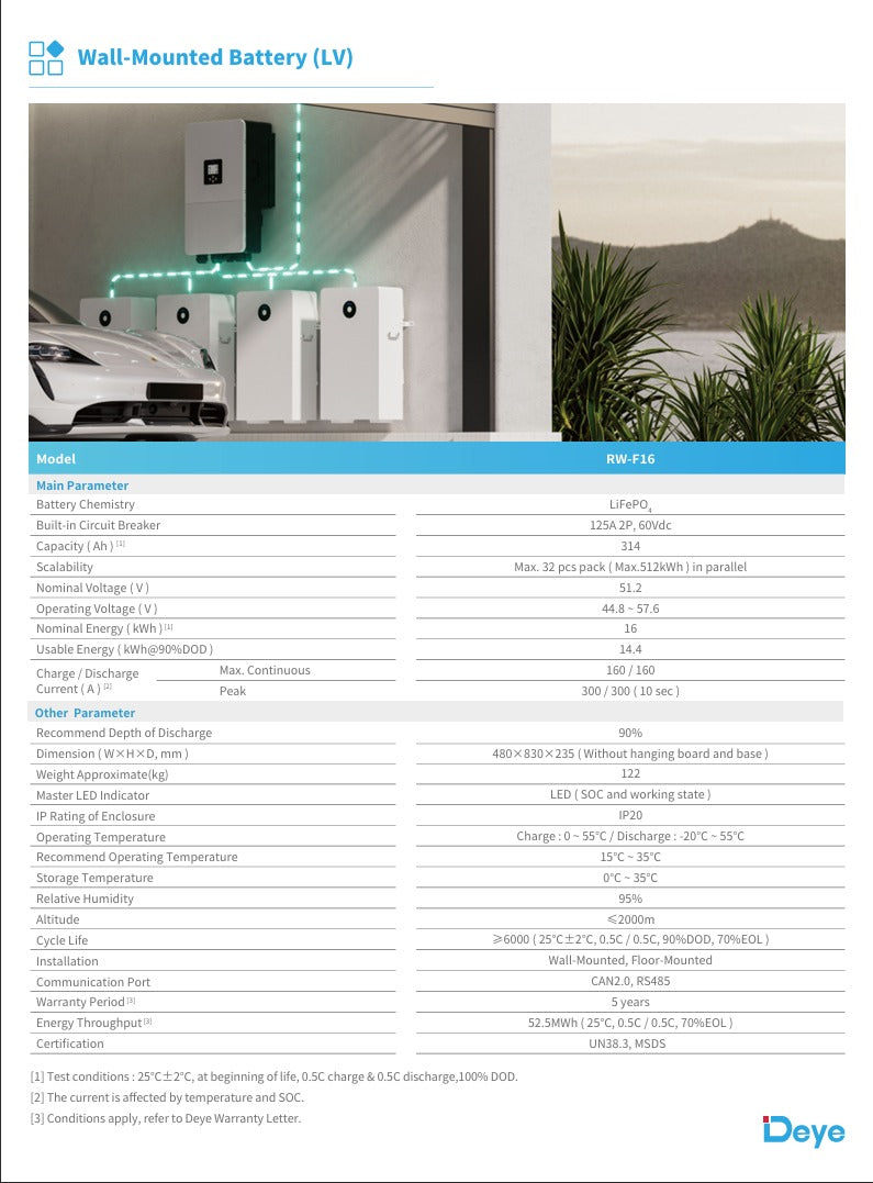 Investieren Sie in den Deye RW-F16 für eine intelligente, sichere und effiziente Energiespeicherlösung, die Ihren aktiven Lebensstil unterstützt und gleichzeitig die Umwelt schont.