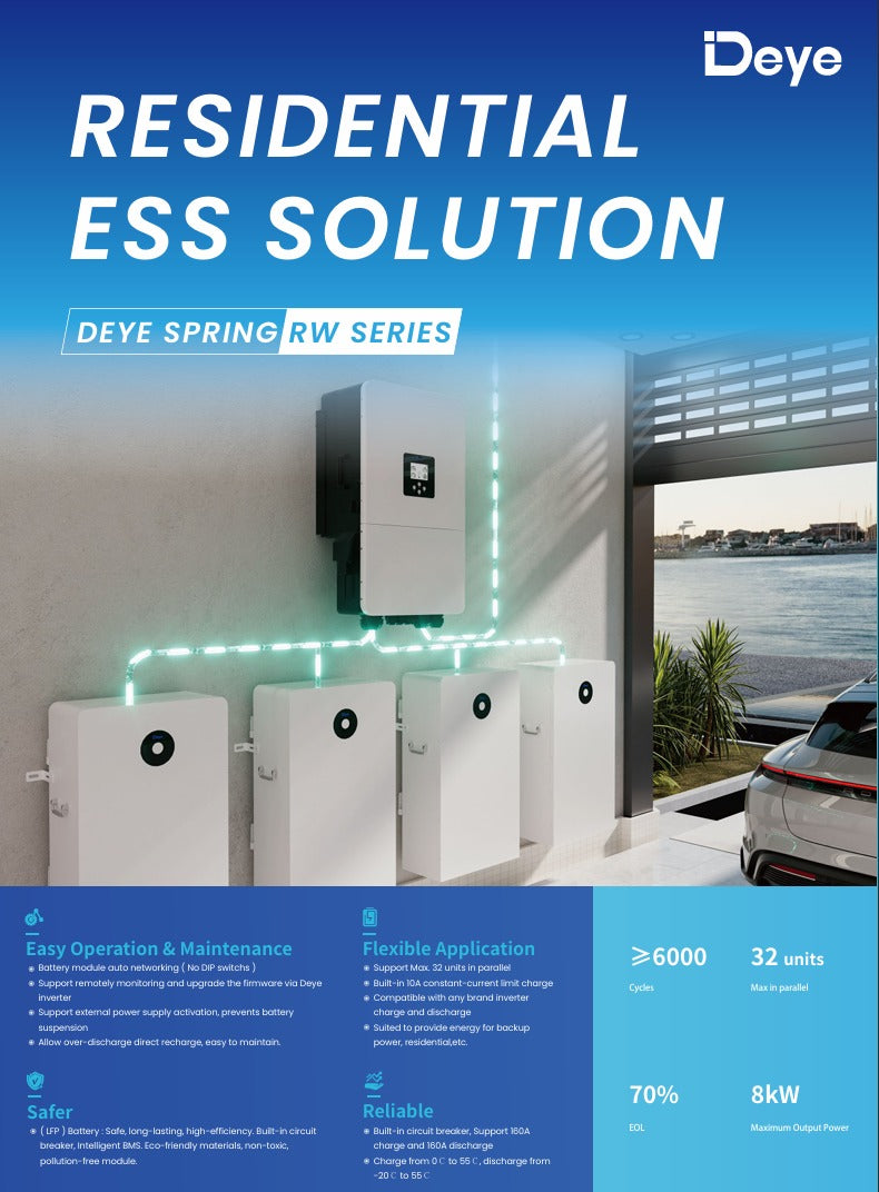 Wir stellen den Deye RW-F16 vor, eine fortschrittliche Energiespeicherlösung für Privathaushalte, die eine zuverlässige, sichere und effiziente Notstromversorgung für Ihr Zuhause bietet. Der RW-F16 ist mit modernster LiFePO4-Batterietechnologie ausgestattet und bietet nachhaltige Energielösungen bei maximaler Leistung und Benutzerfreundlichkeit.