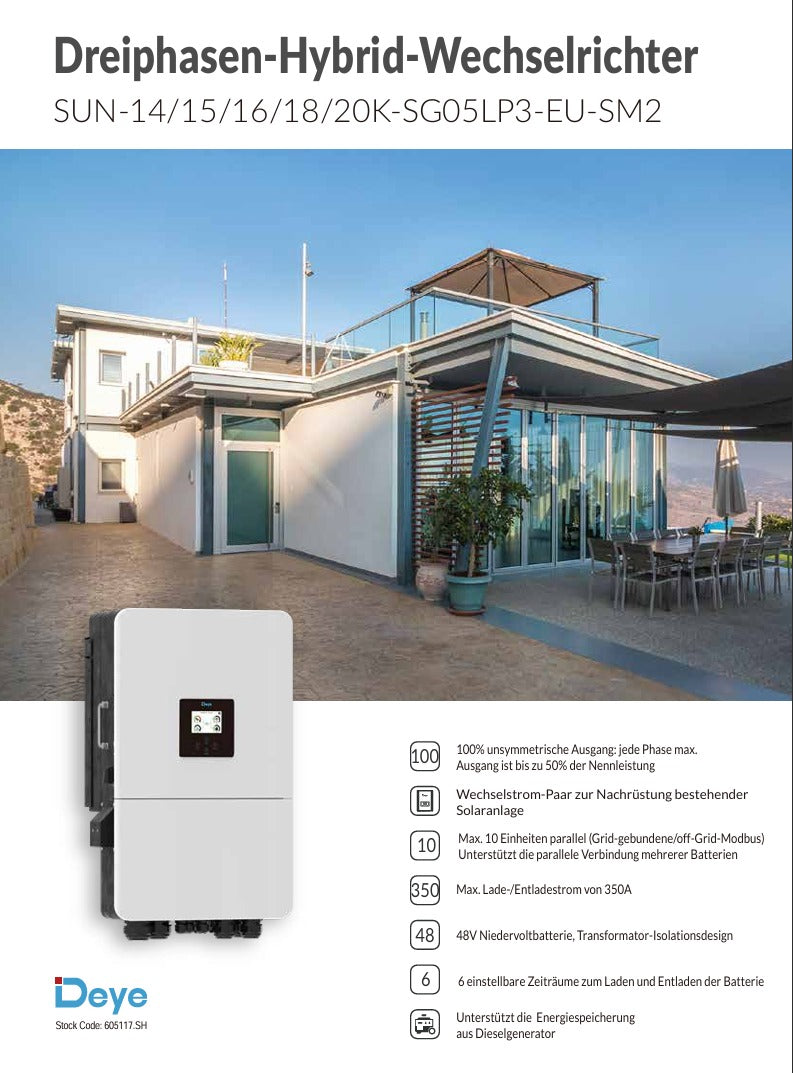 Hybrid-Wechselrichter Deye SUN-20K-SG05LP3-EU-SM2 | 20KW | Dreiphasig | 2 MPPT | Unterstützt LV-Batterie