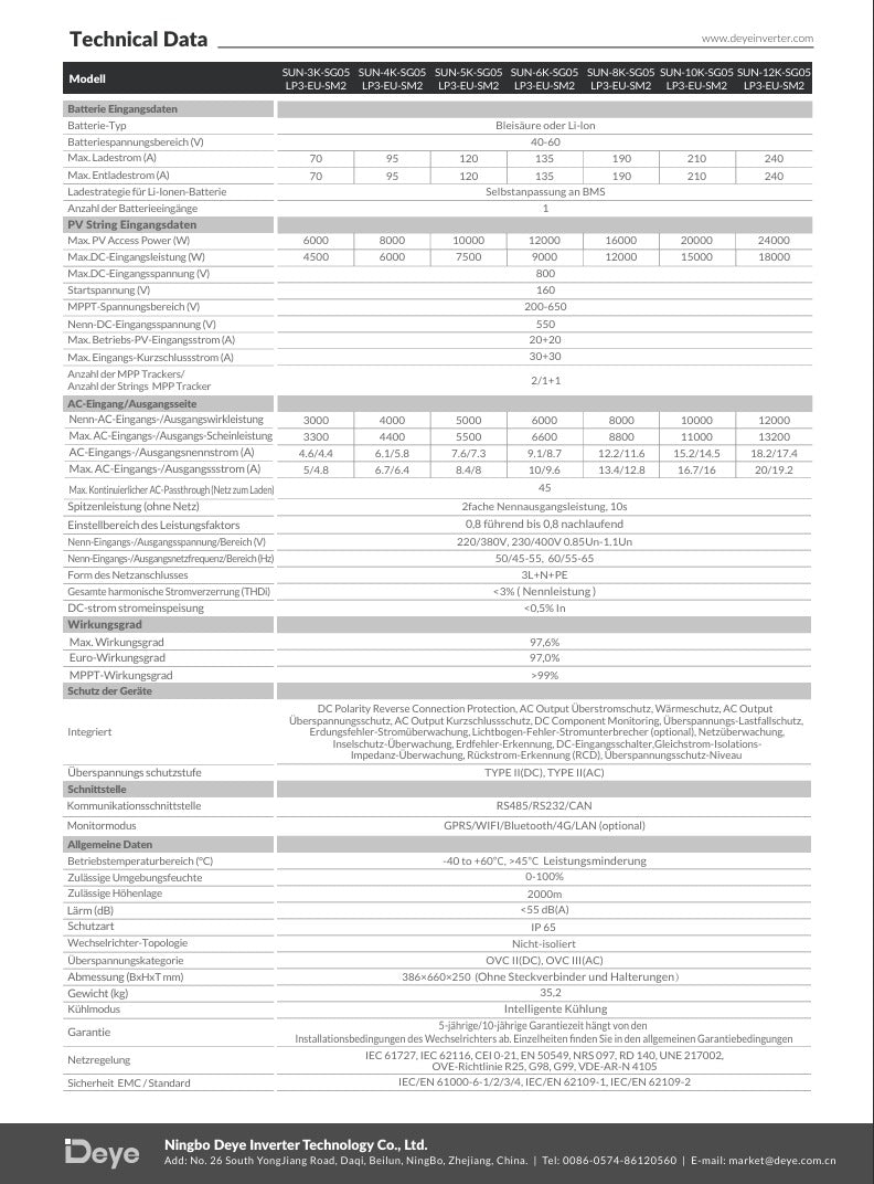 Der SUN-8/10/12K-SG05LP3-EU-SM2 bietet nicht nur überlegene Leistung und zuverlässige Energieumwandlung, sondern gewährleistet auch Flexibilität und Sicherheit in verschiedenen Anwendungen.